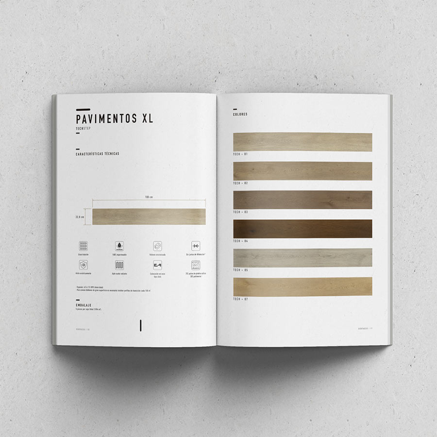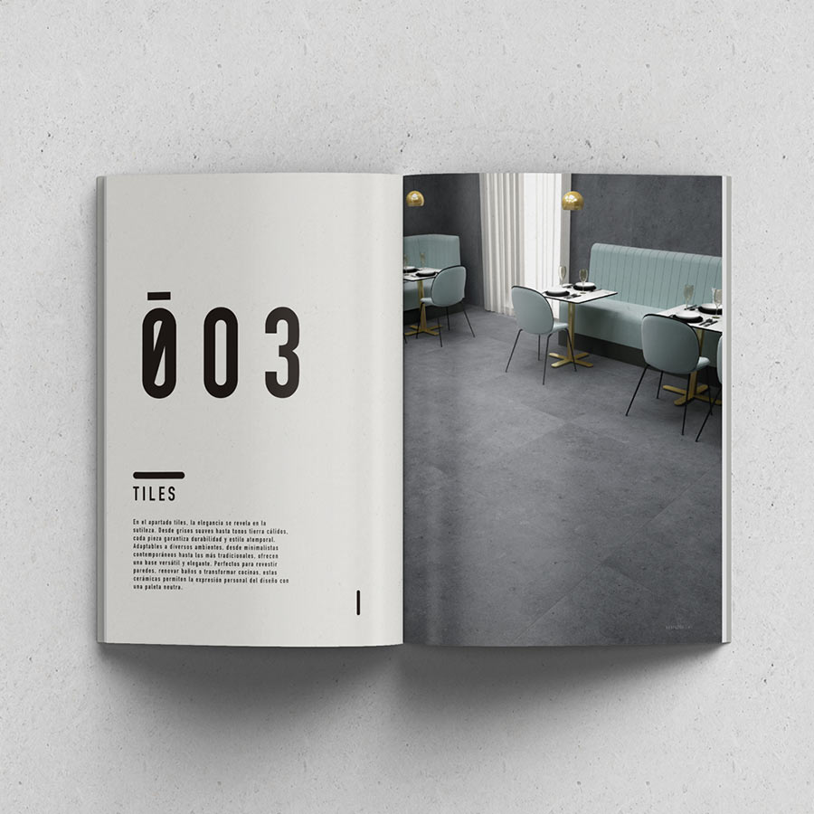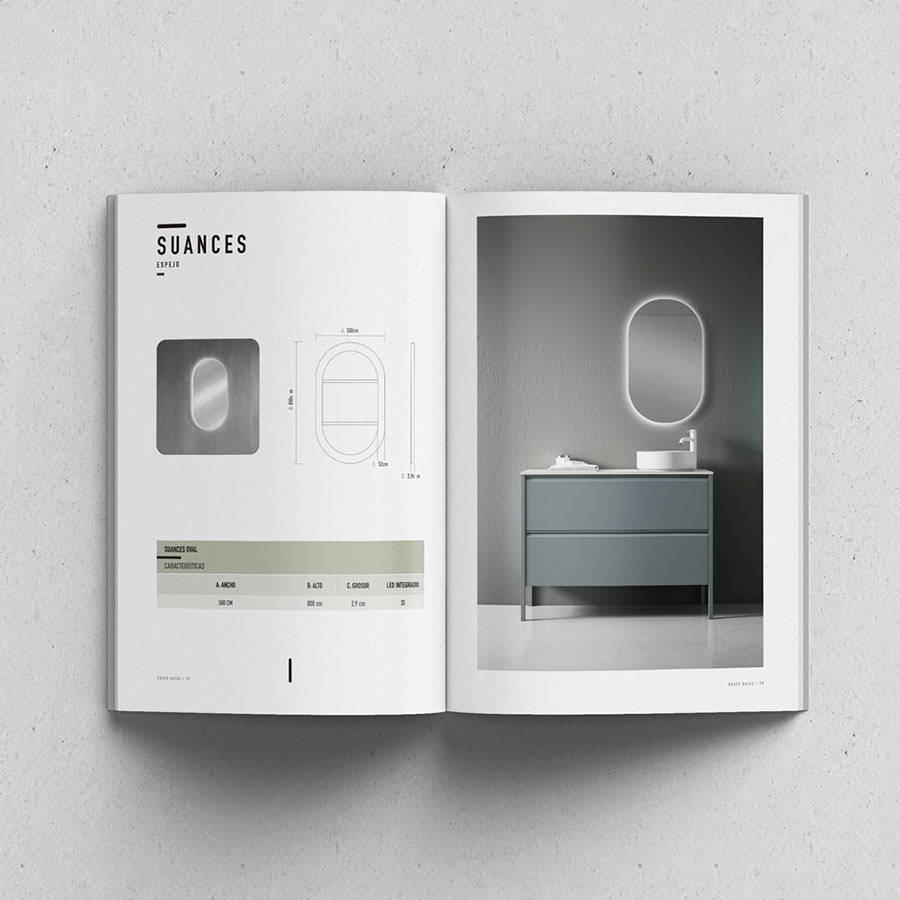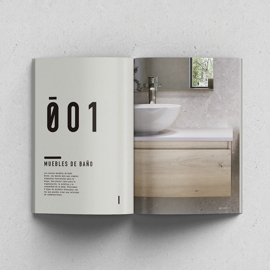 Impresión de catálogos de producto para la empresa GRATO. Las portadas están impresas en un papel especial y con un stamping en color metalizado plata que le confiere un estilo de lujo minimalista.